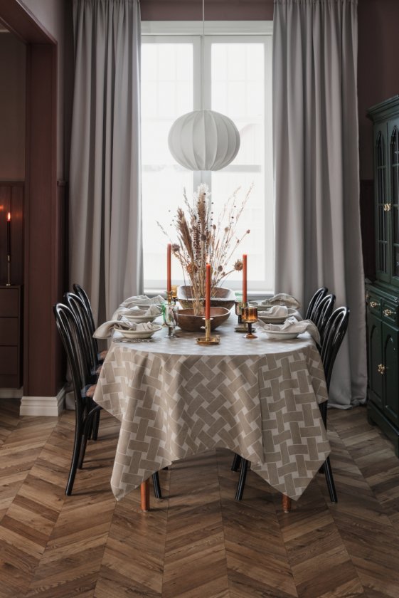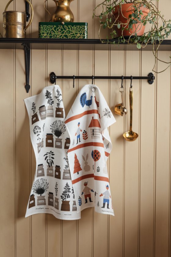 I höst- och vinterkollektionen 2024 vill vi väcka din lust att inreda och förnya hemmet på ett enkelt och personligt sätt. Vi har återupptagit ett mönster från vårt arkiv, Ailanthus, designat av Louise Fougstedt-Carling redan på 1970-talet. Läs gärna mer om Louise under "Våra Designers." Förutom Ailanthus har det vackra mönstret Korg vidareutvecklats till en mer storskalig design med en dämpad färgskala. Du hittar mönstret på många nya produkter, som till exempel plädar och kuddfodral. I höstens och vinterns sortiment finner du även nya kökshanddukar och brickor med nya mönster och färger.