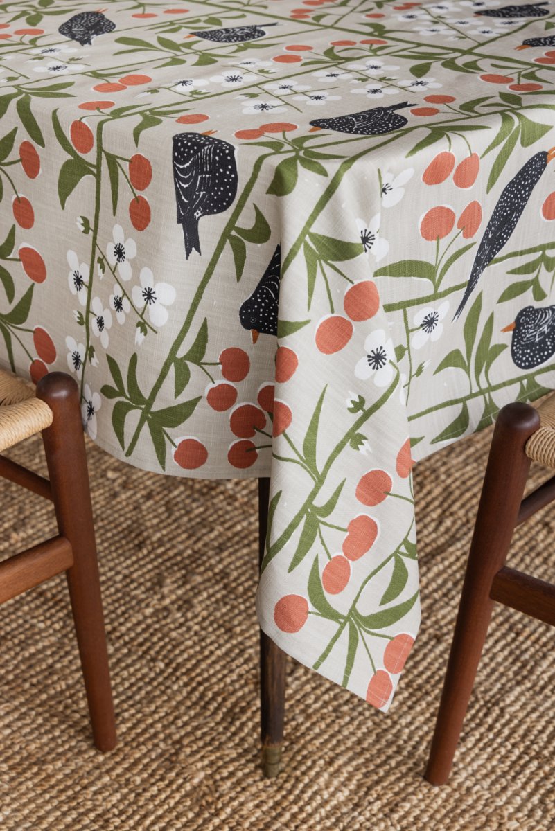 Tyget säljs som metervara och är tillverkat i 100 % bomull. Det passar utmärkt till gardiner, dukar, kuddfodral eller andra personliga projekt där du vill ge plats åt ett mönster med både historia och karaktär.