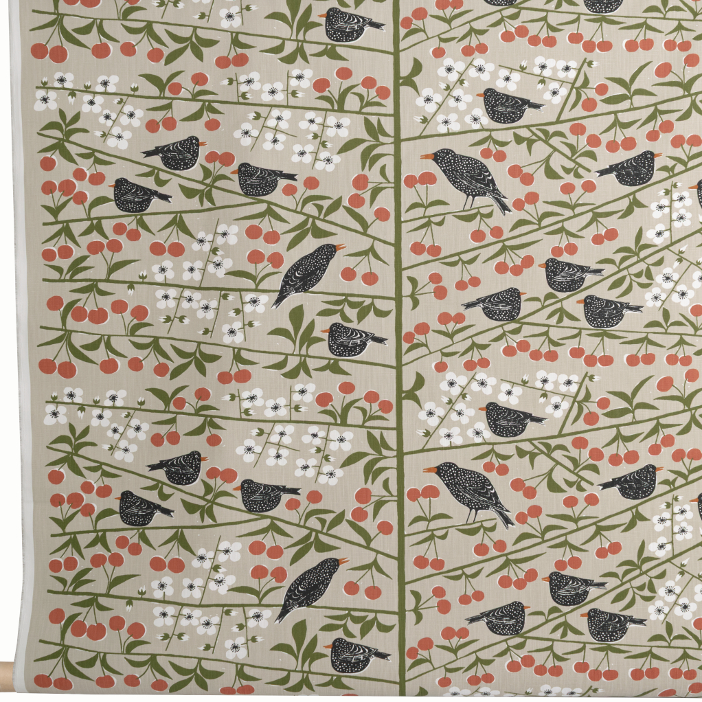 Körsbärsträdgården metervara beige, är ett klassiskt blommönster ritat av Marianne Westman 1959. Mönstret har ett mjukt, organiskt uttryck och passar i många olika typer av hem.