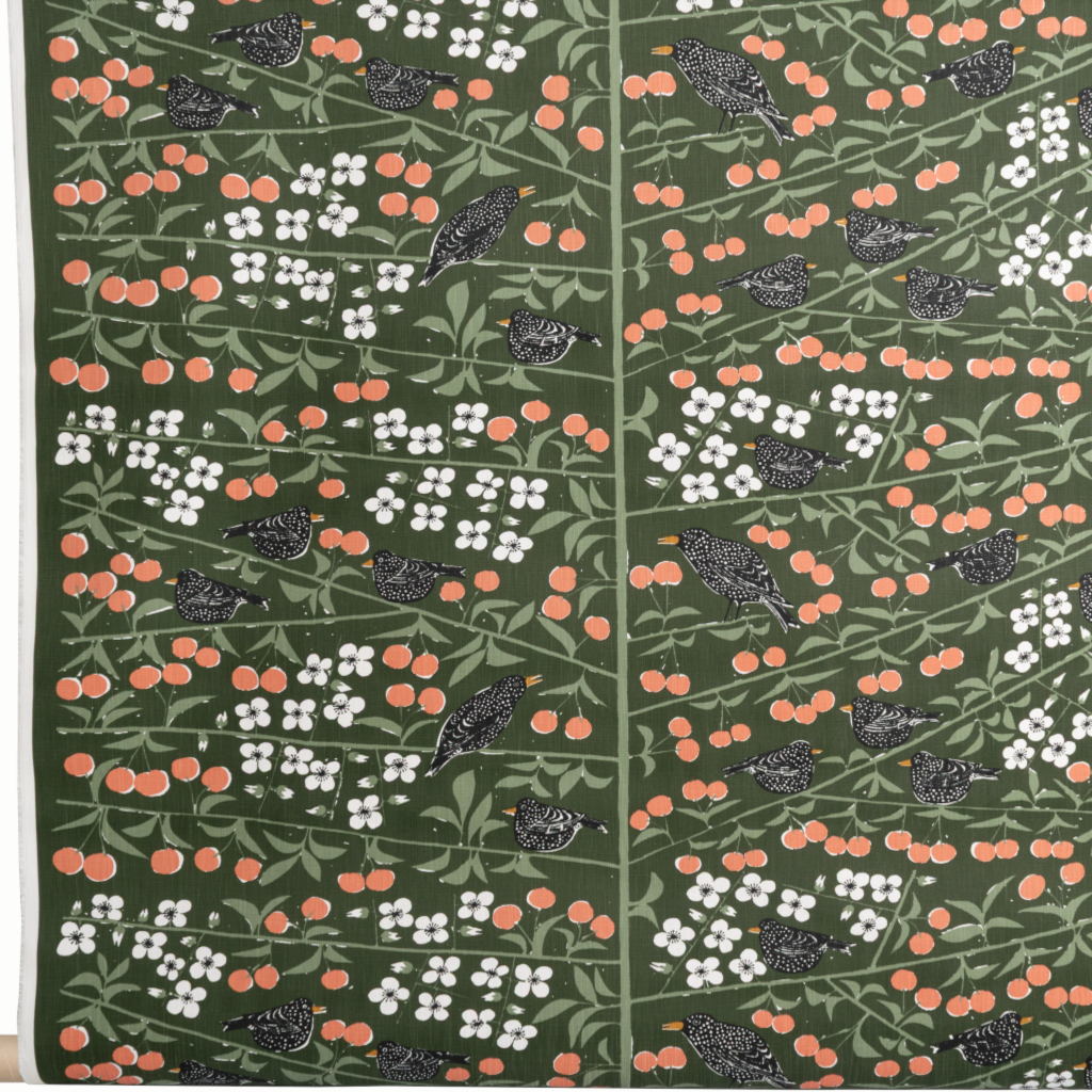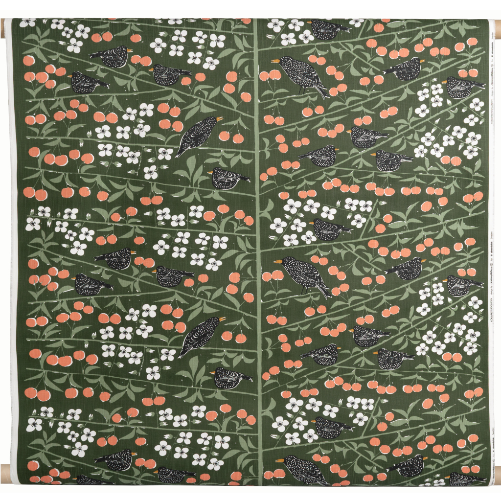 Körsbärsträdgården i mörkgrön, är ett klassiskt blommönster ritat av Marianne Westman 1959. Mönstret har ett mjukt, organiskt uttryck och passar i många olika typer av hem.