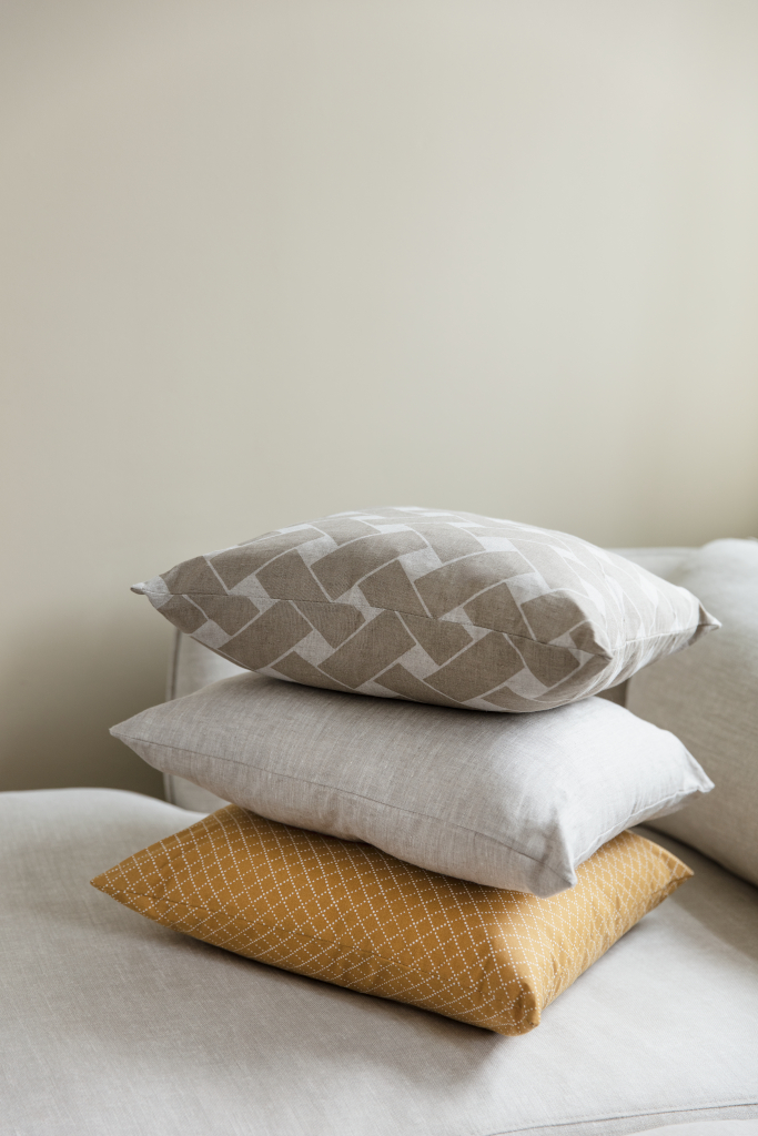 Kuddfodralet är tillverkat av bomullstyg och har ett praktiskt blixtlås som gör det enkelt att byta ut och tvätta. Låt Prickruta, med sin varma färg, ge ett mjukt lyft till din inredning.